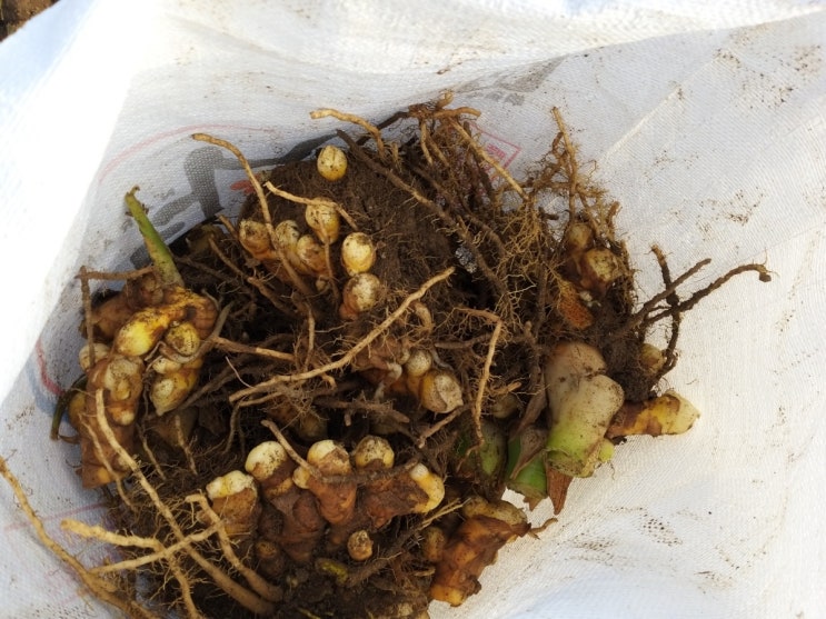 날이 좀 따뜻할 때 울금(강황)수확을 마쳤답니다